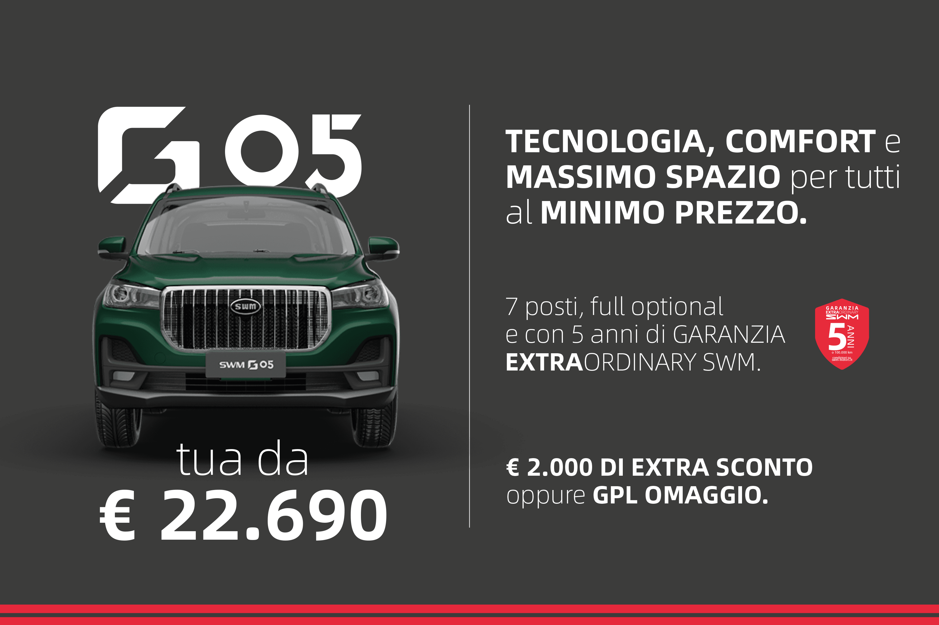 G05 inoltre vanta una garanzia di 5 anni o 100.000 km, pensata per offrire tranquillità e affidabilità.